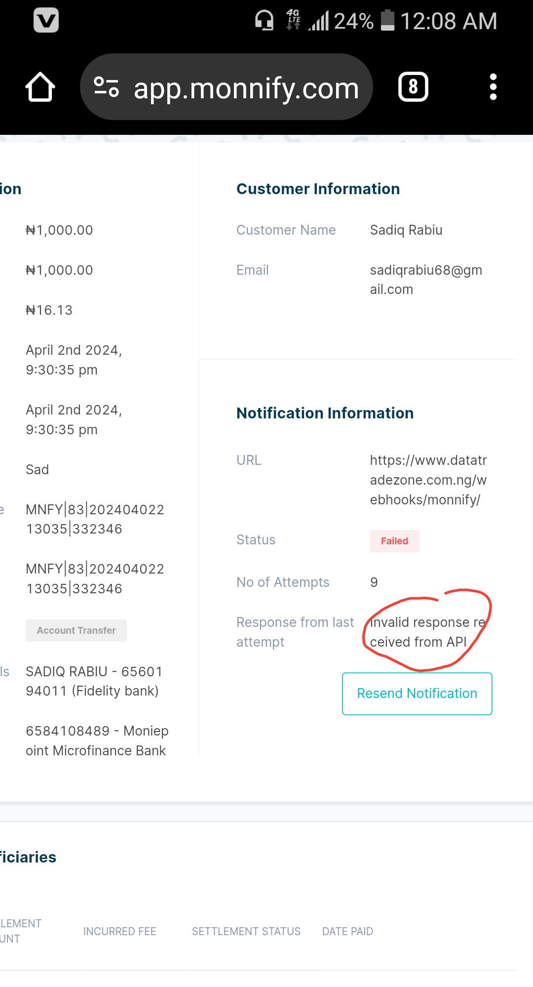 Please note that attempts to repush notification failed with error message "Invalid response from the API".